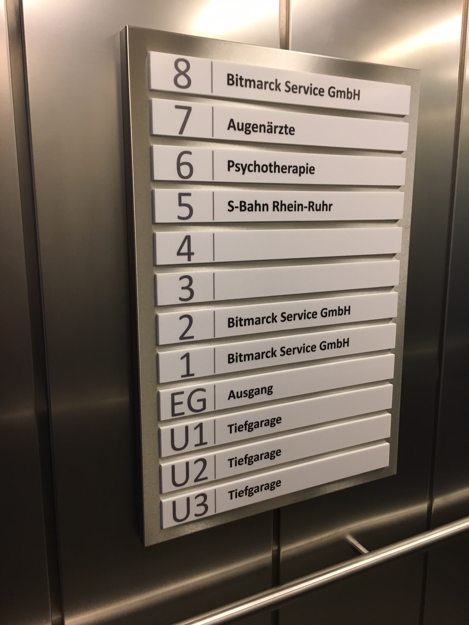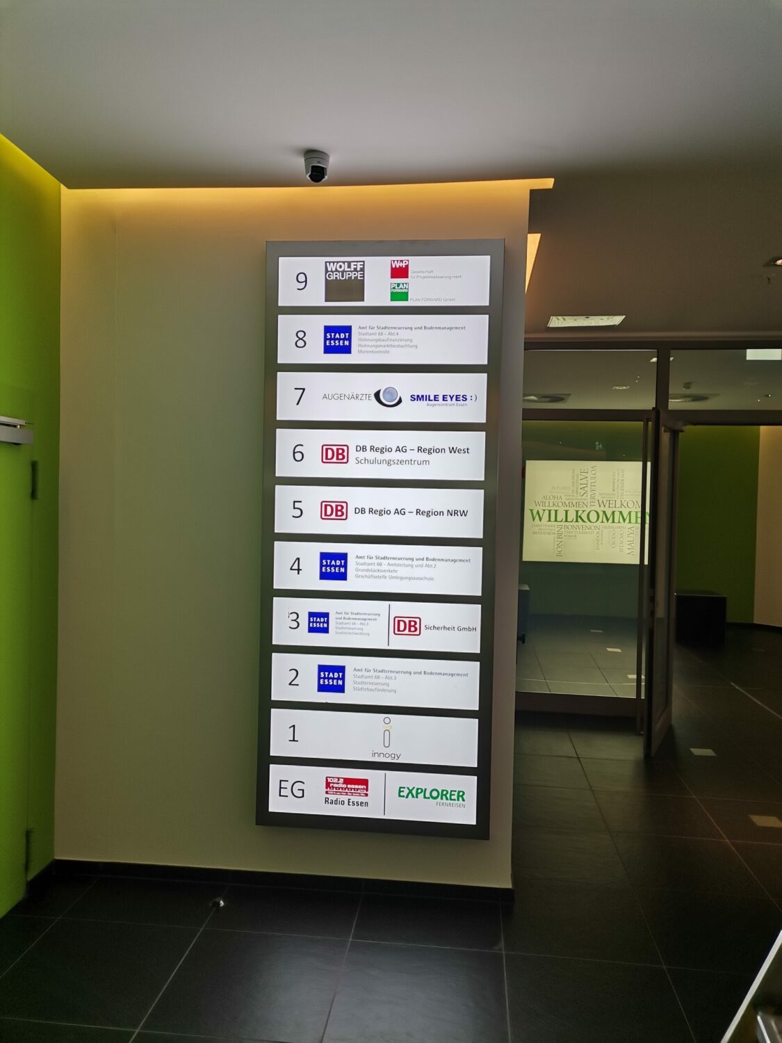 In Form von Leitsystemen führen Sie Ihre Kunden einfach und ohne Umwege ans Ziel! In großen, komplexen Gebäuden sind Wegweiser unerlässlich, um sich zurecht zu finden. Seien es Türschilder, Rettungswege, etc.